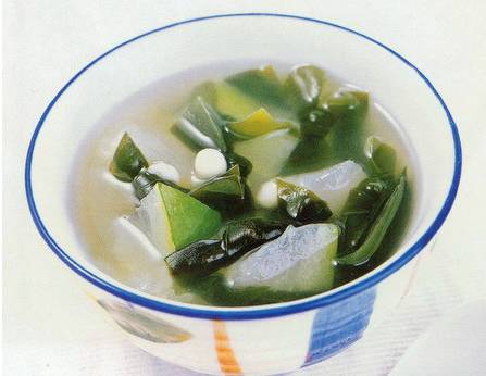 可以喝点冬瓜海带汤。冬瓜味甘淡性寒凉,能清热利水,消肿解毒,生津除烦燥;海带味咸性寒,可清热利水,养阴止血。如果想来点荤的,也可以在其中加上一条鲫鱼,鲫鱼性味甘平,能健脾益胃,利湿止渴。将二两冬瓜切片,加入水中,再将海带、虾皮、鲫鱼一起炖汤,鲜香开胃,还可消暑。