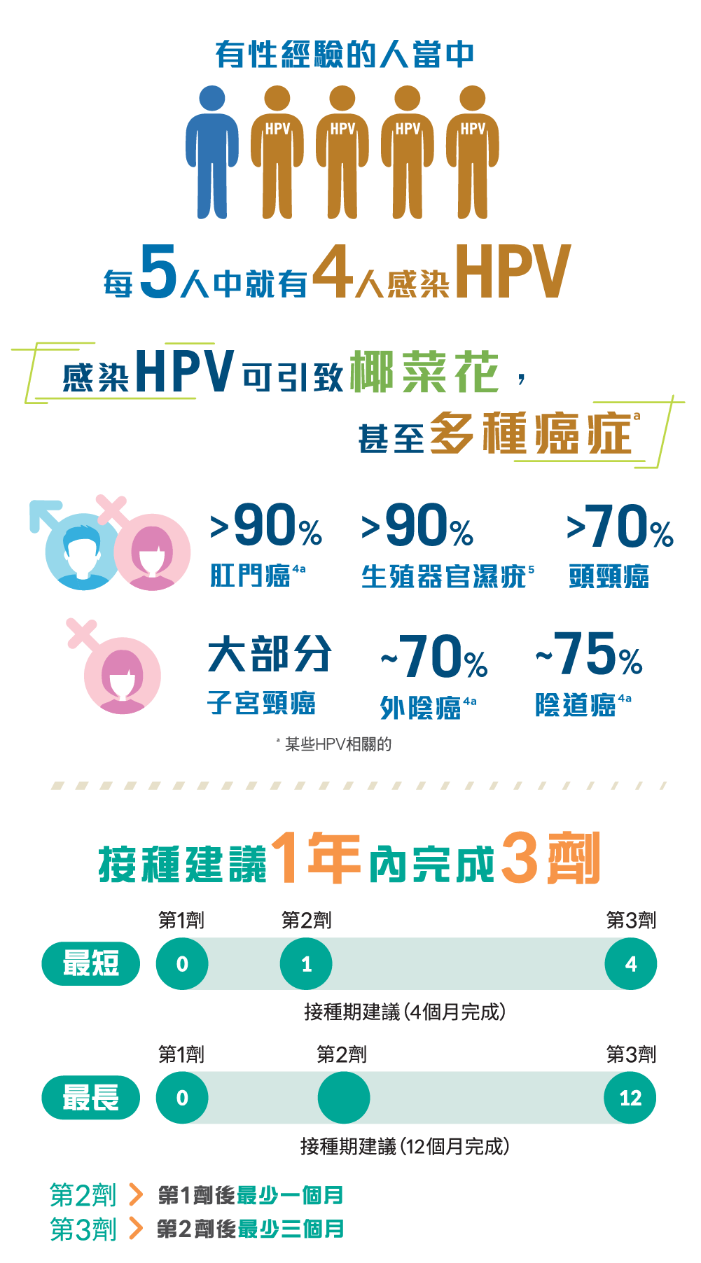‧ 子宮頸癌、肛門癌、頭頸癌、外陰癌 、陰道癌 、椰菜花(生殖器官濕疣)