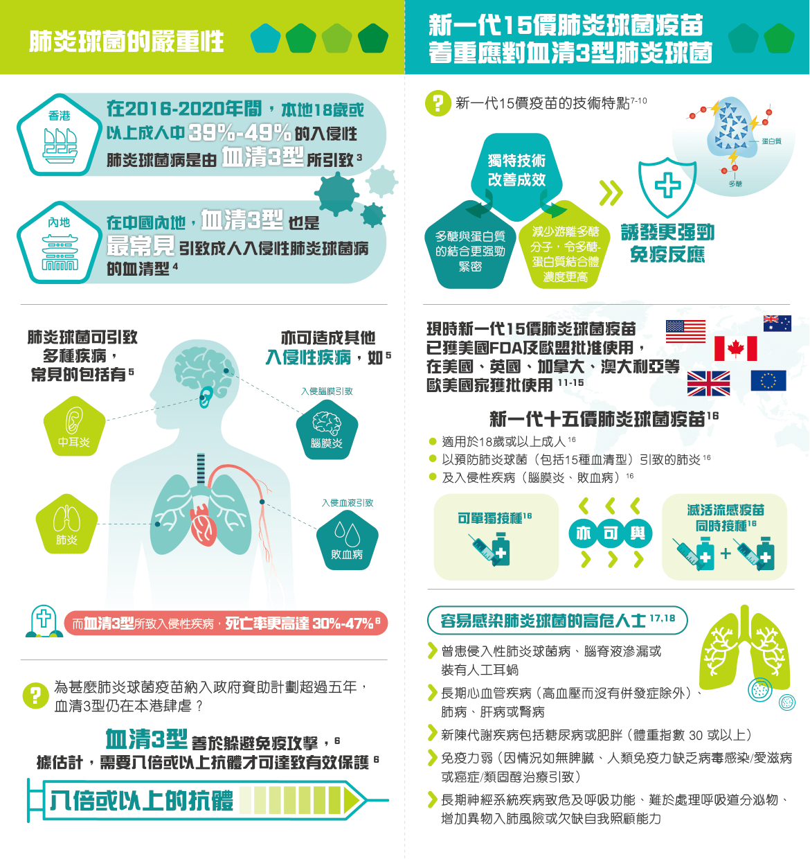 15价肺炎球菌疫苗有效针对血清3型肺炎球菌,免疫反应更强劲。 |