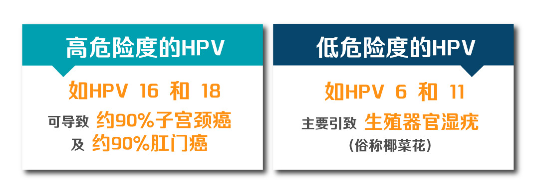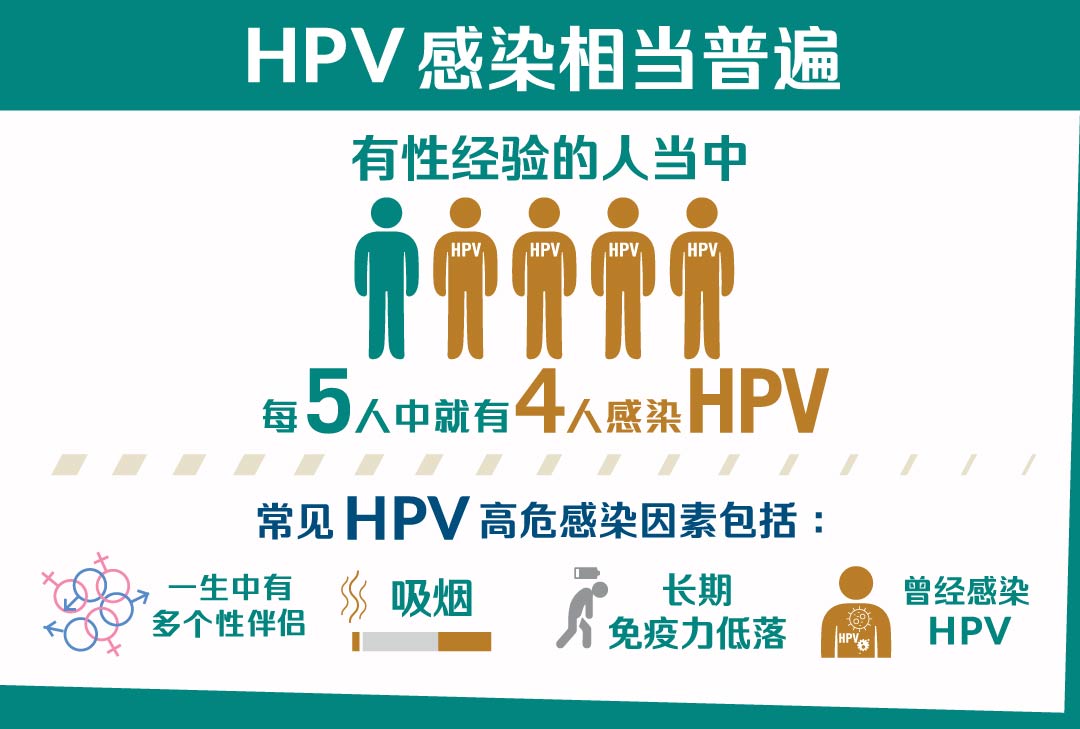 感染HPV后通常不会有病征,大致可分为高危险度及低危险度两种,潜伏期可长达10年,更会人传人,目前并没有针对性药物。HPV感染后一般可以被免疫系统自行清除,但持续感染可导致各种由HPV病毒引起的疾病。高达80%有性生活人士,一生中有机会受到HPV病毒感染。