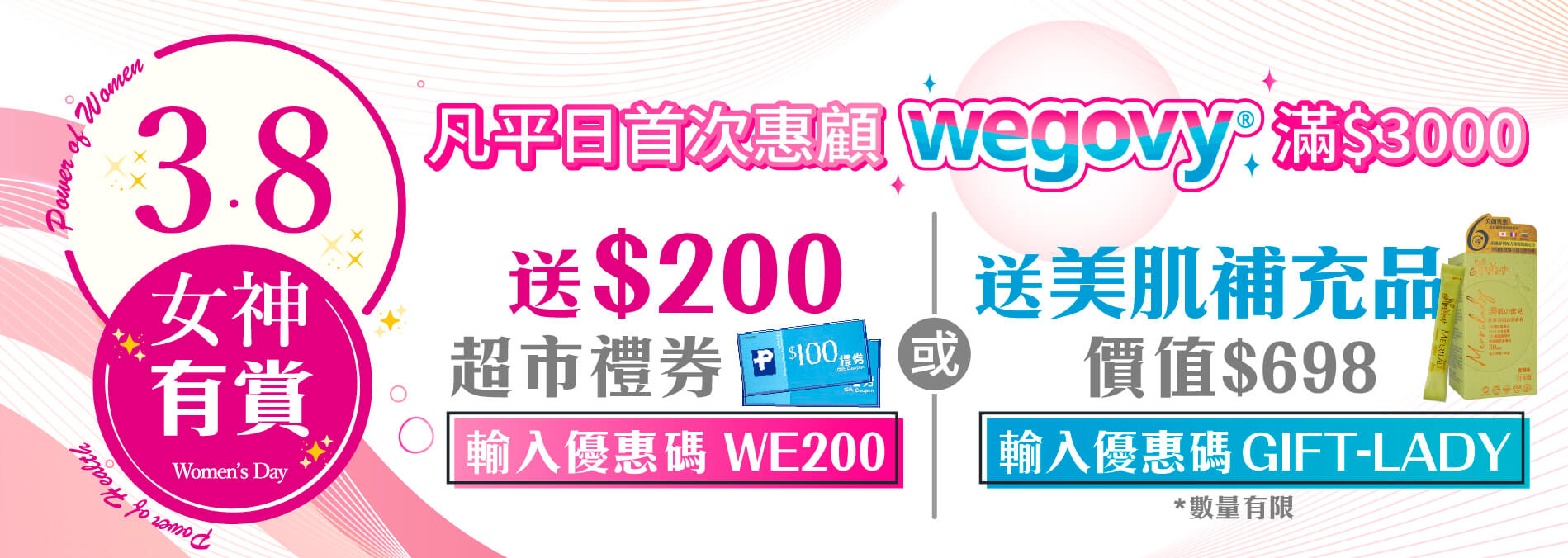 4. 凡于此推广期内,新客户于Medtimes官网购买指定体重管理服务满HK$3,000并选择星期一至五进行检查,付款时输入优惠码,可额外获赠超市现金券或日本美康莱 MERRILADY美肌の蜜儿。礼品会于进行检查当天,在时代医疗服务中心领取。礼品数量有限,送完即止。(只限于网上购买的服务,并需于网上交易时输入优惠码及成功付款,如到诊客人并非首次惠顾或非星期一至五进行检查,将会自动取消此优惠资格而不另作通知。)*