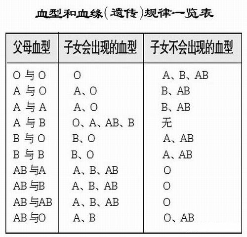 如此看来,除了A型和A型生不出B型和AB型,B型与B型生不出A型和AB型之外,其他血型遗传情况都是可能出现的。