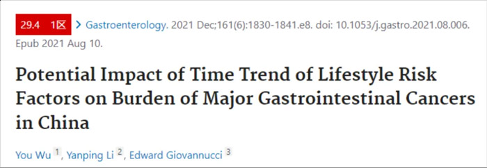 哈佛大学在美国肠胃病学协会(AGA)官方期刊Gastroenterology曾发表一项关于“中国胃肠癌的发生与生活方式风险因素变化关联”的研究。结果发现:50.4%的常见消化道癌症与饮食不健康、吸烟喝酒、运动量不足及超重等有关。